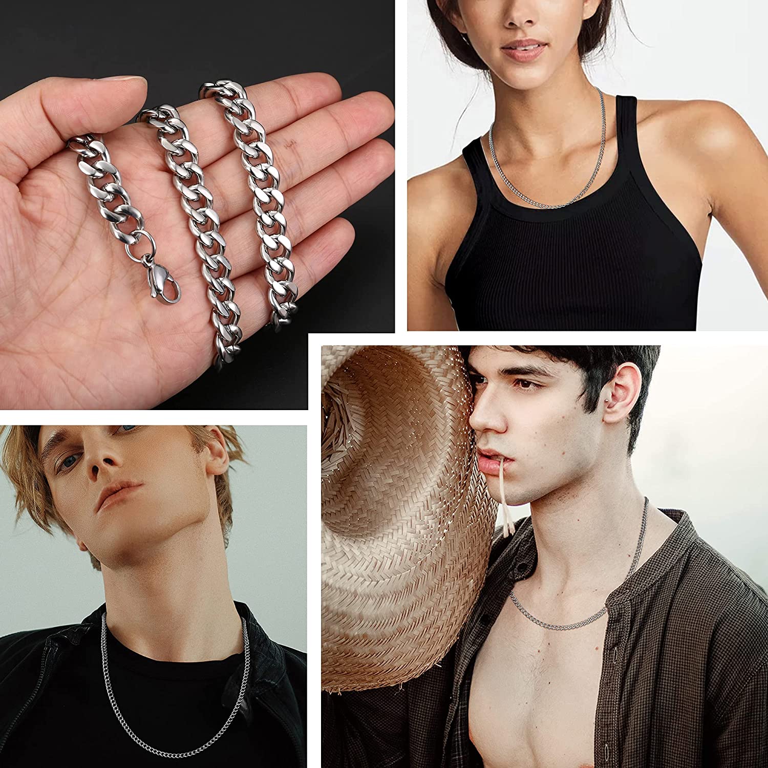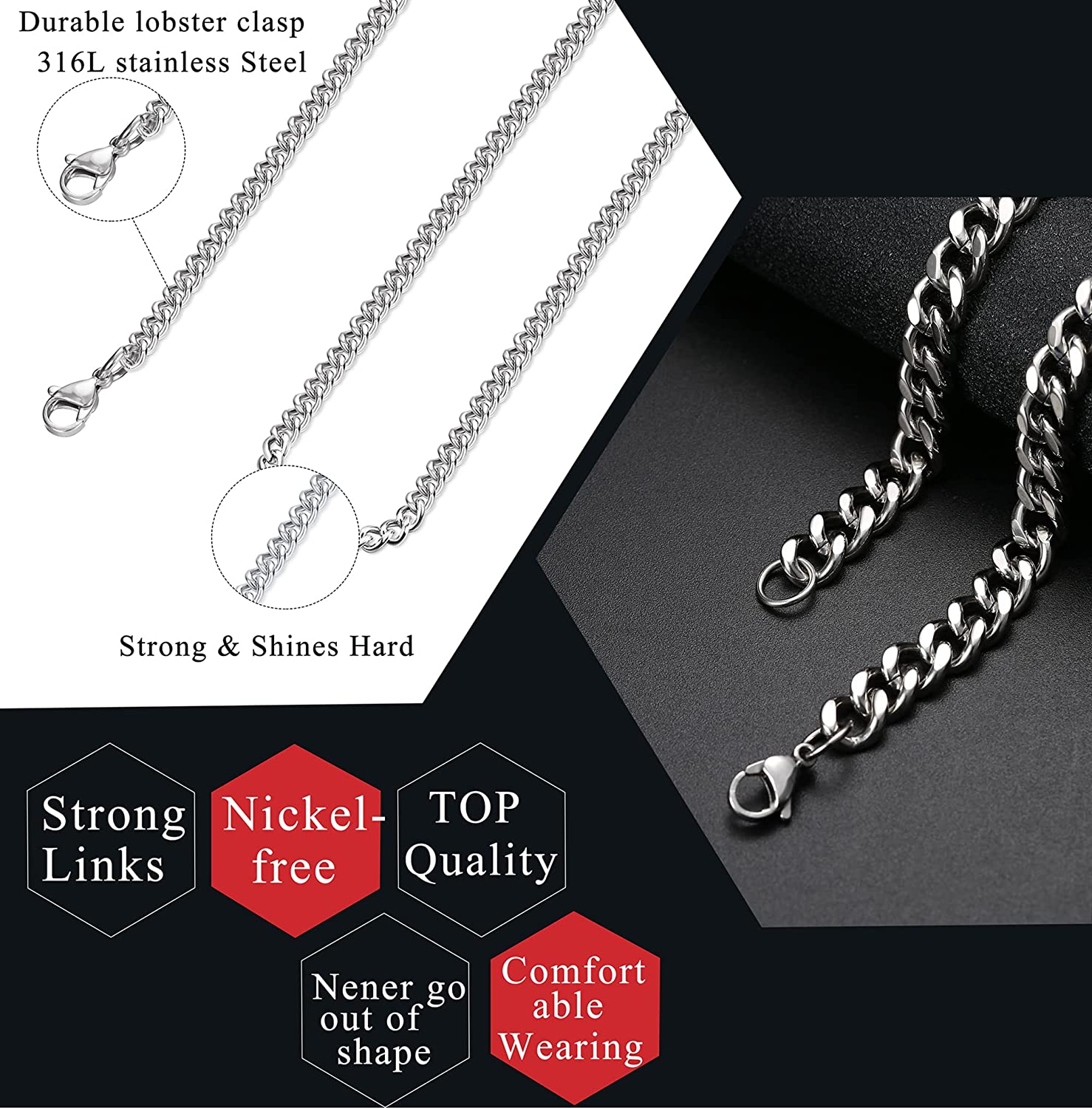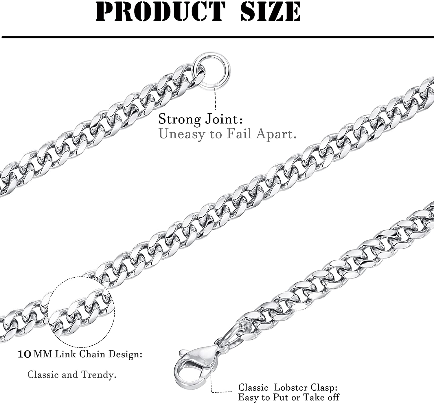 KRFY 10mm Stainless Steel Miami Cuban Link Chain for Men 24 inches