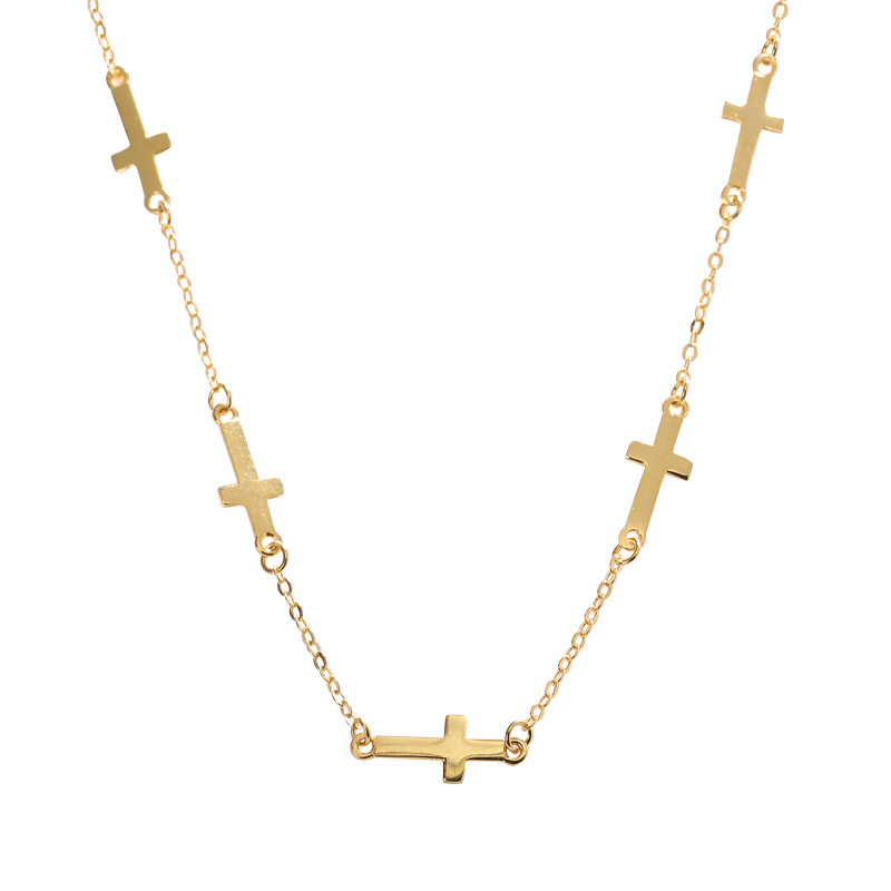 Multiple Crosses Sterling Silver Plated Gold Necklace