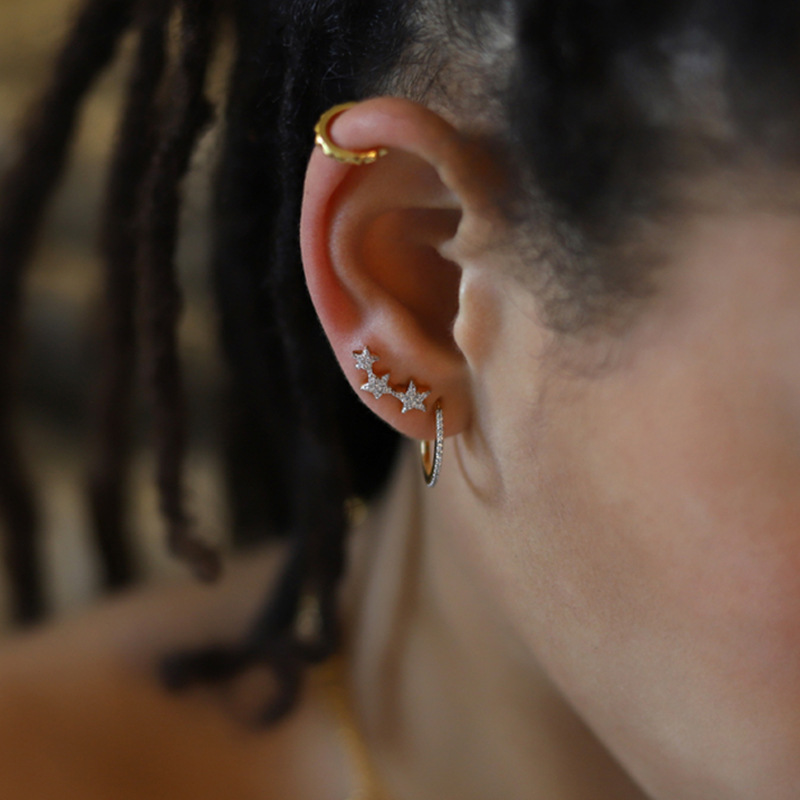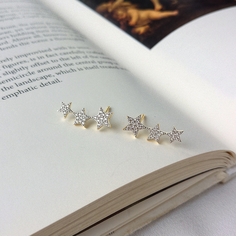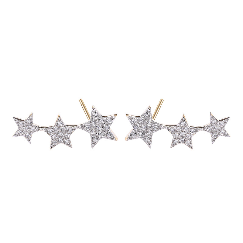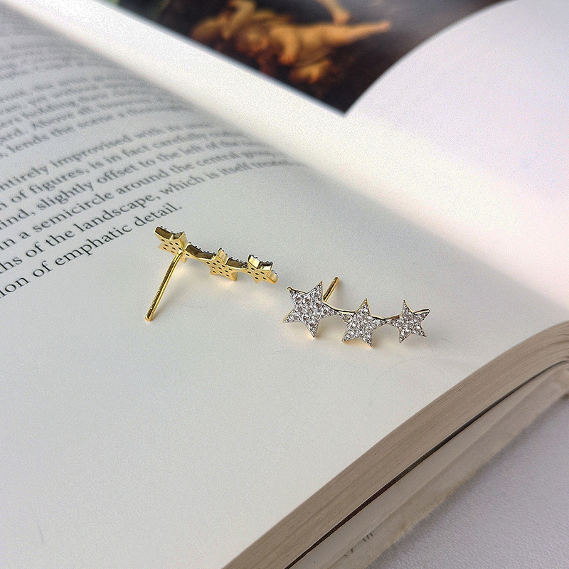 Multiple Stars Round Cut Sterling Silver Plated Gold Stud Earring
