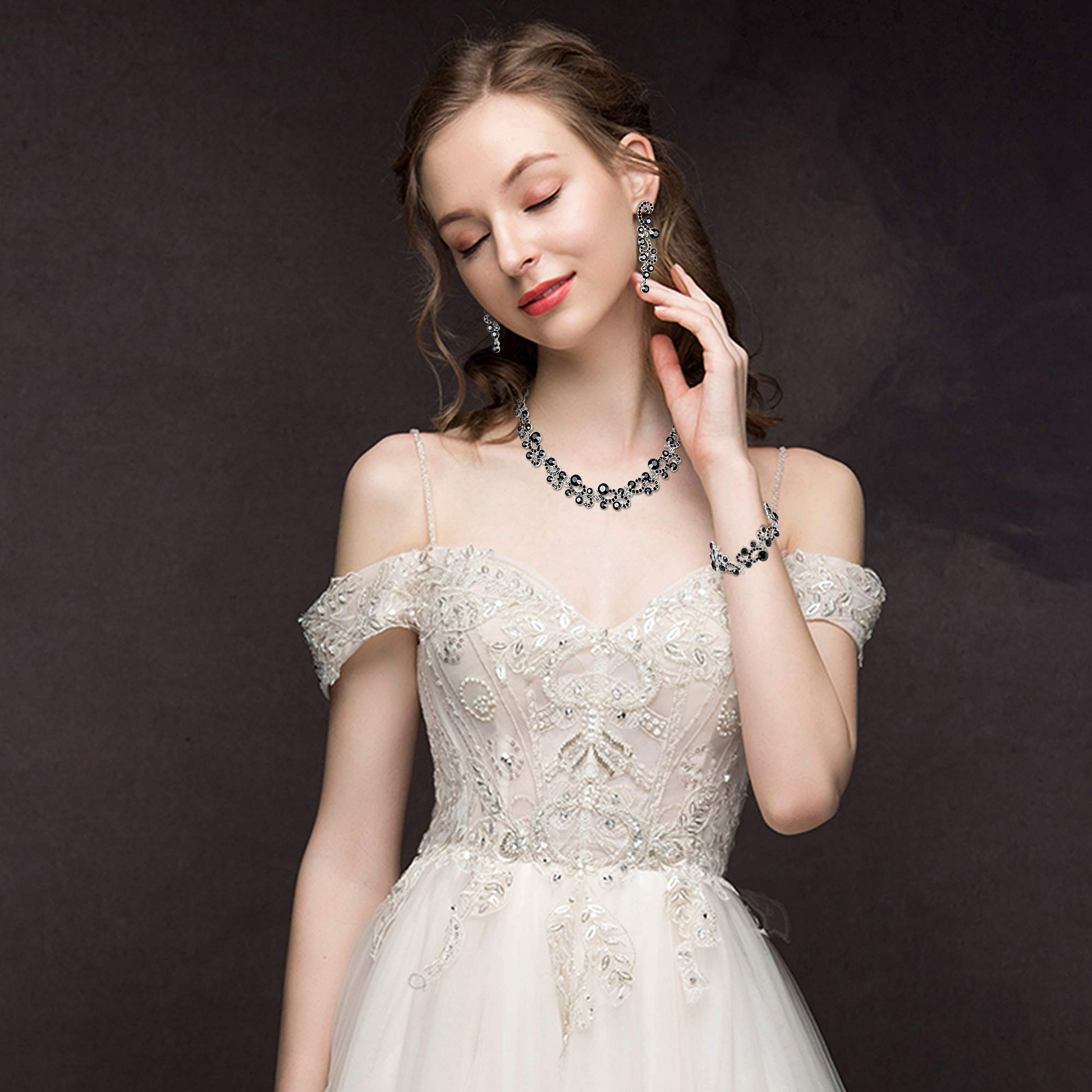 Choker Length: 45+6cm(17.7+2.4inches); Bracelet Length: 18+5cm(7.1+2inches); Earrings Length: 6cm(2.4inches). Adjustable size, Perfect for women.