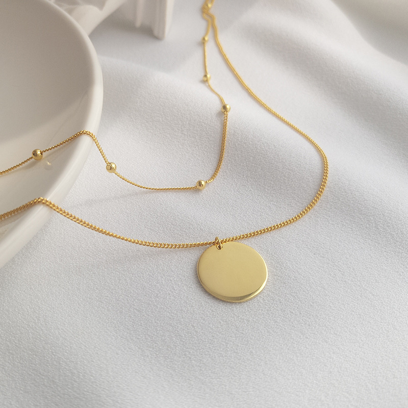 Simple Glossy Round Sterling Silver Plated Gold Necklace