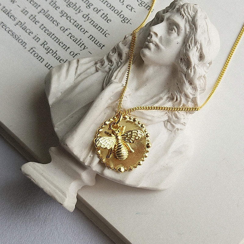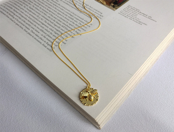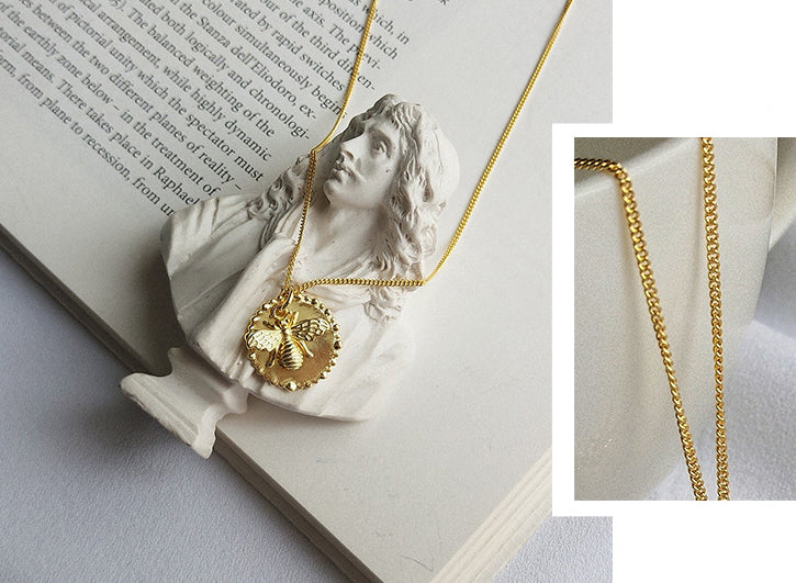 Stereoscopic Bee Sterling Silver Plated Gold Necklace