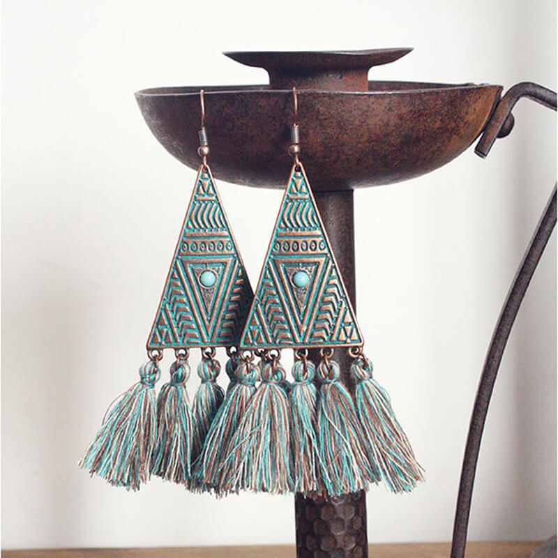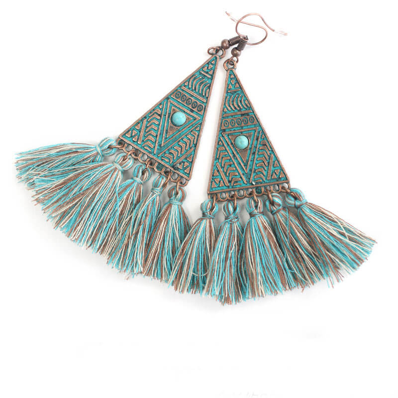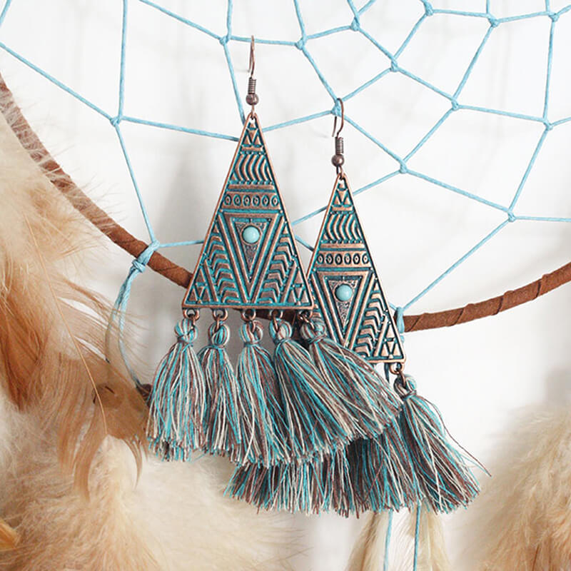 Vintage Tassel Bohemian Triangle Sterling Silver Earrings