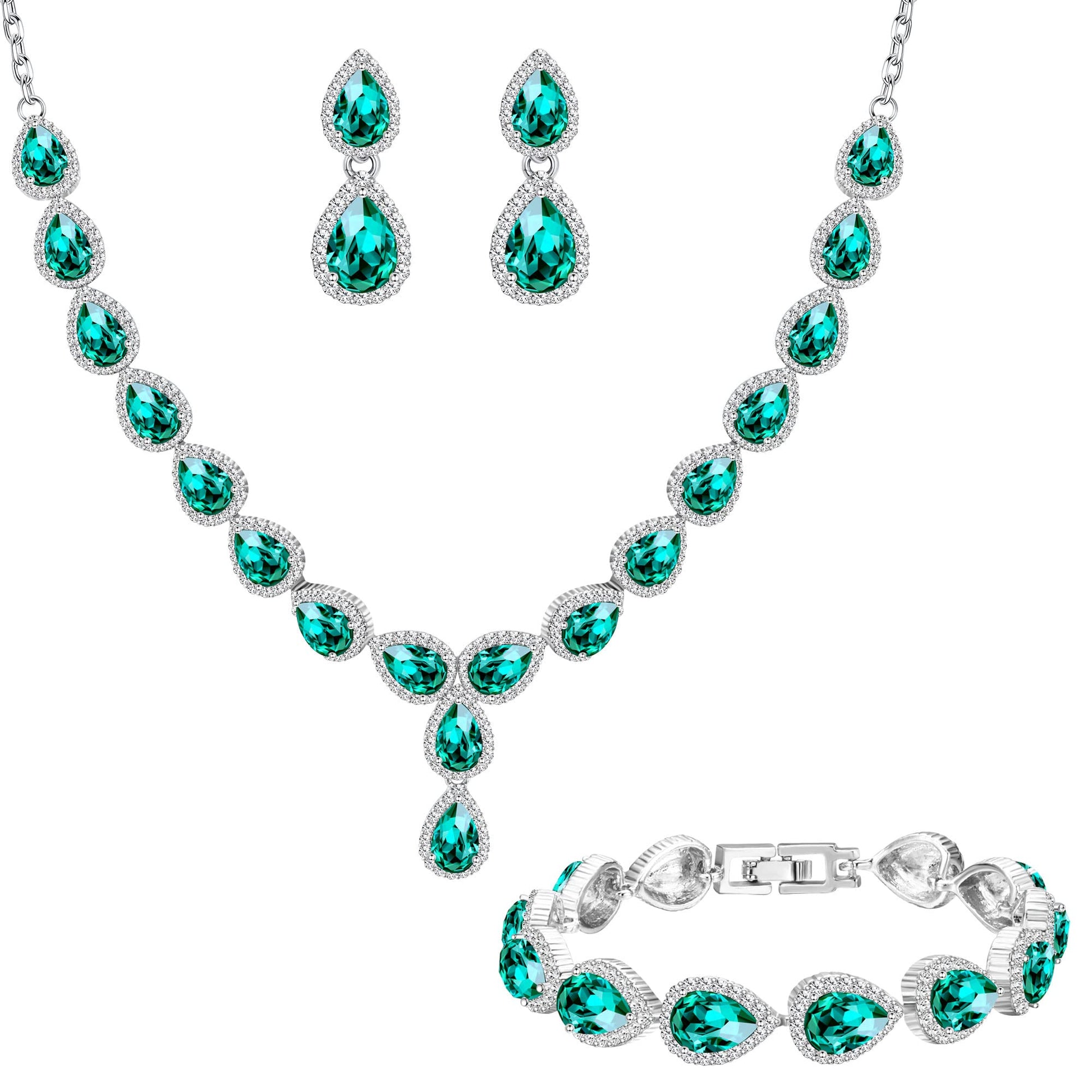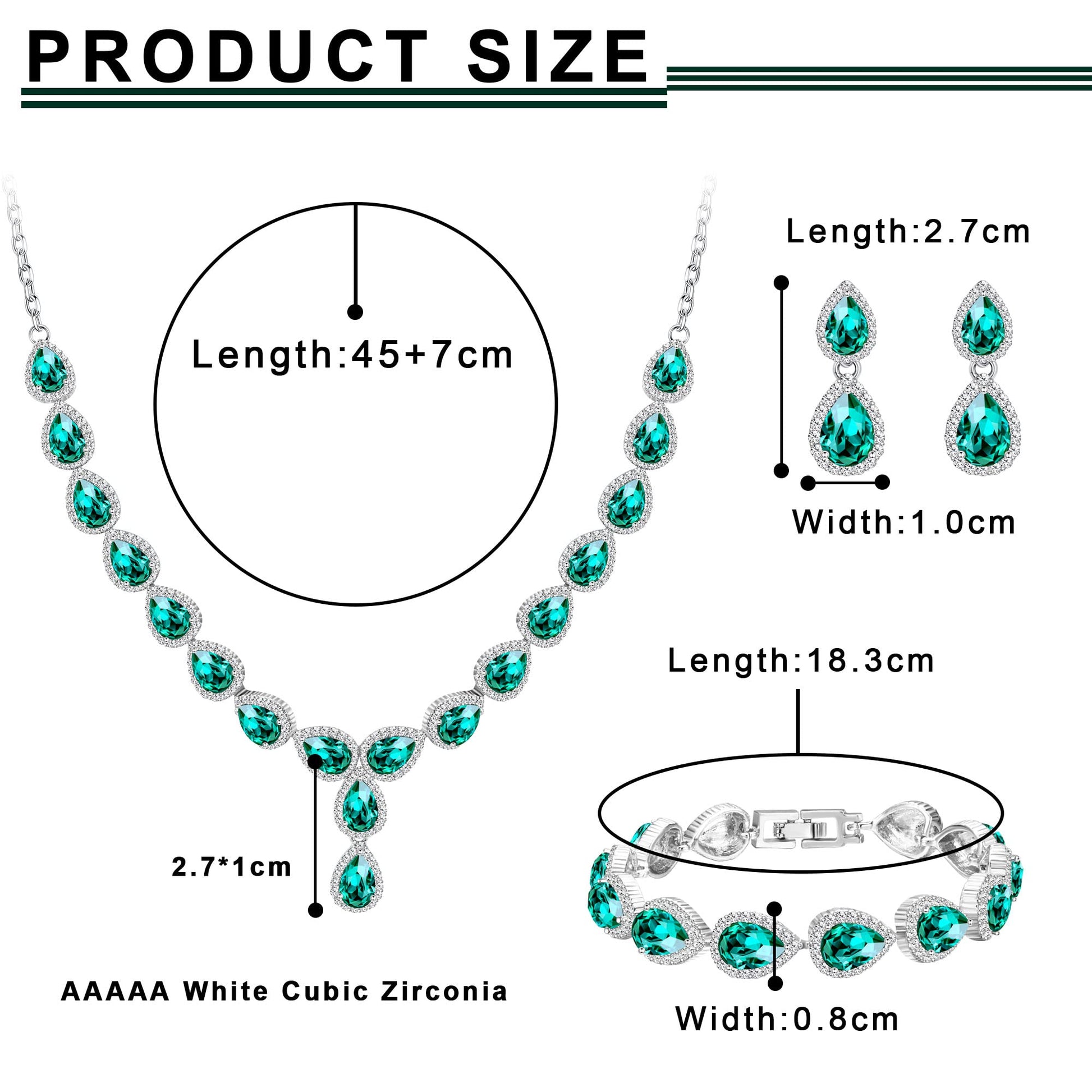 💐Jewellery Set Size💐---Necklace Length:45+7cm,Pendent size:2.7*1cm;Bracelet length:18.3cm;Earrings size:2.7*1cm,come with White/Red/Green 3color for your choice.Jewellery sets are not only suitable for wearing at weddings, but also for you to important occasions.