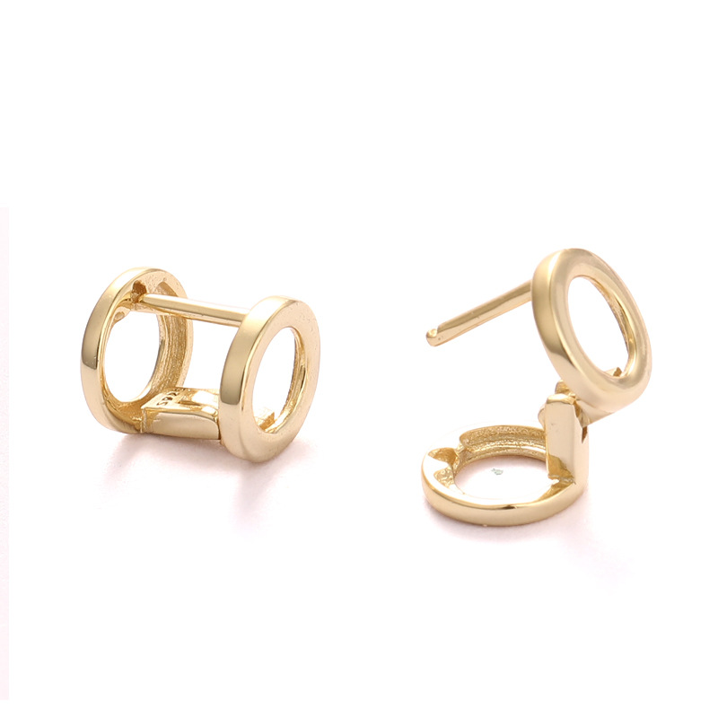 Cylindrical Hourglass Sterling Silver Plated Gold Earring