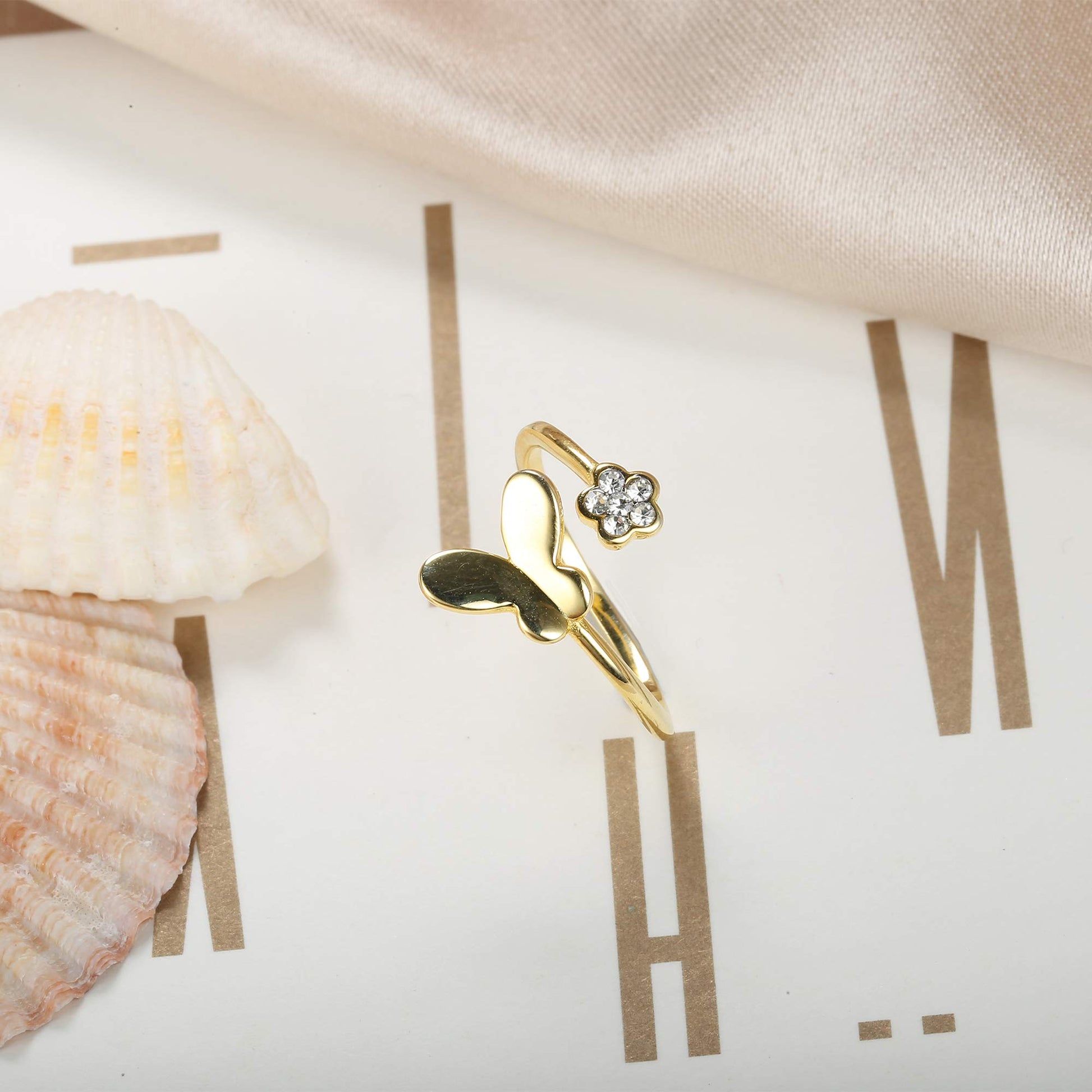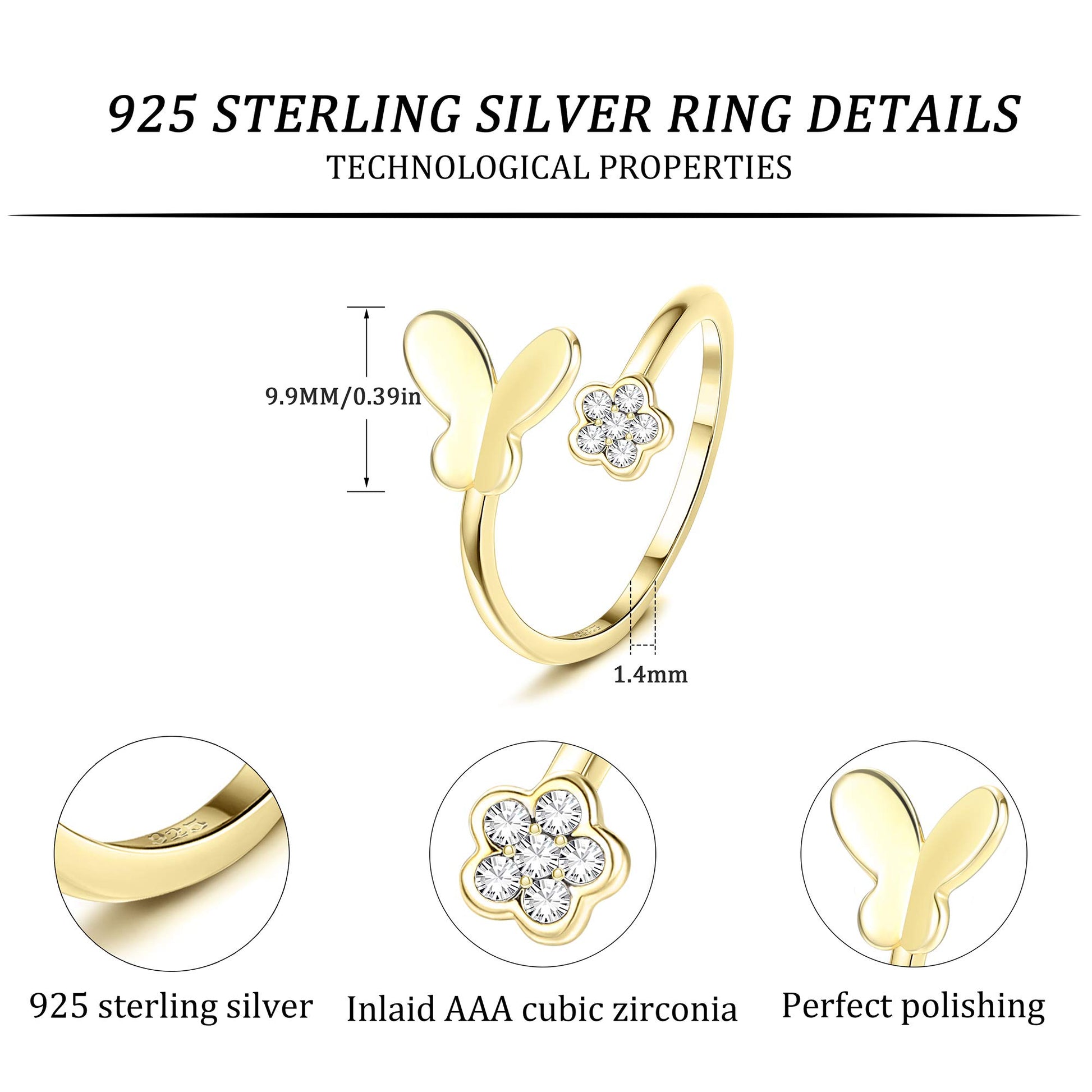 💕Material— Cute Butterfly Open Ring Crafted in Solid 925 Sterling Silver, Inlaid AAA Cubic Zirconia Flower, Shiny and Exquisite. 14K Gold Plated and High Polished, Affordable Price and Luxurious Appearance 💕Adjustable Ring Size— About 7, Can Be Adjusted Slightly. Lightweight and Comfortable, Easy to The Finger's Wearing and Makes You Eye-catching and Look Amazing. However, 925 Sterling Silver is a Very Soft Material, Pls Adjust It Gently 💕Unique Design— The Design of Flower Ring Is Inspired by Natural Flower and Butterfly. The Butterfly Fly Towards to The Flower, Making The Ring More Elegant and Unique. This Flower Ring Is a Wonderful Gift for Loved Ones 💕Great Gift for Her— Packaged in a Velvet Drawstring Bag for Easy Gift-giving. Perfect Gift for Birthday, Anniversary, Valentine's Day and Any Special Days. Cute, Pretty, Elegant, and Charms. Perfect Match for Young Ladies Who Love Nature and Life |
