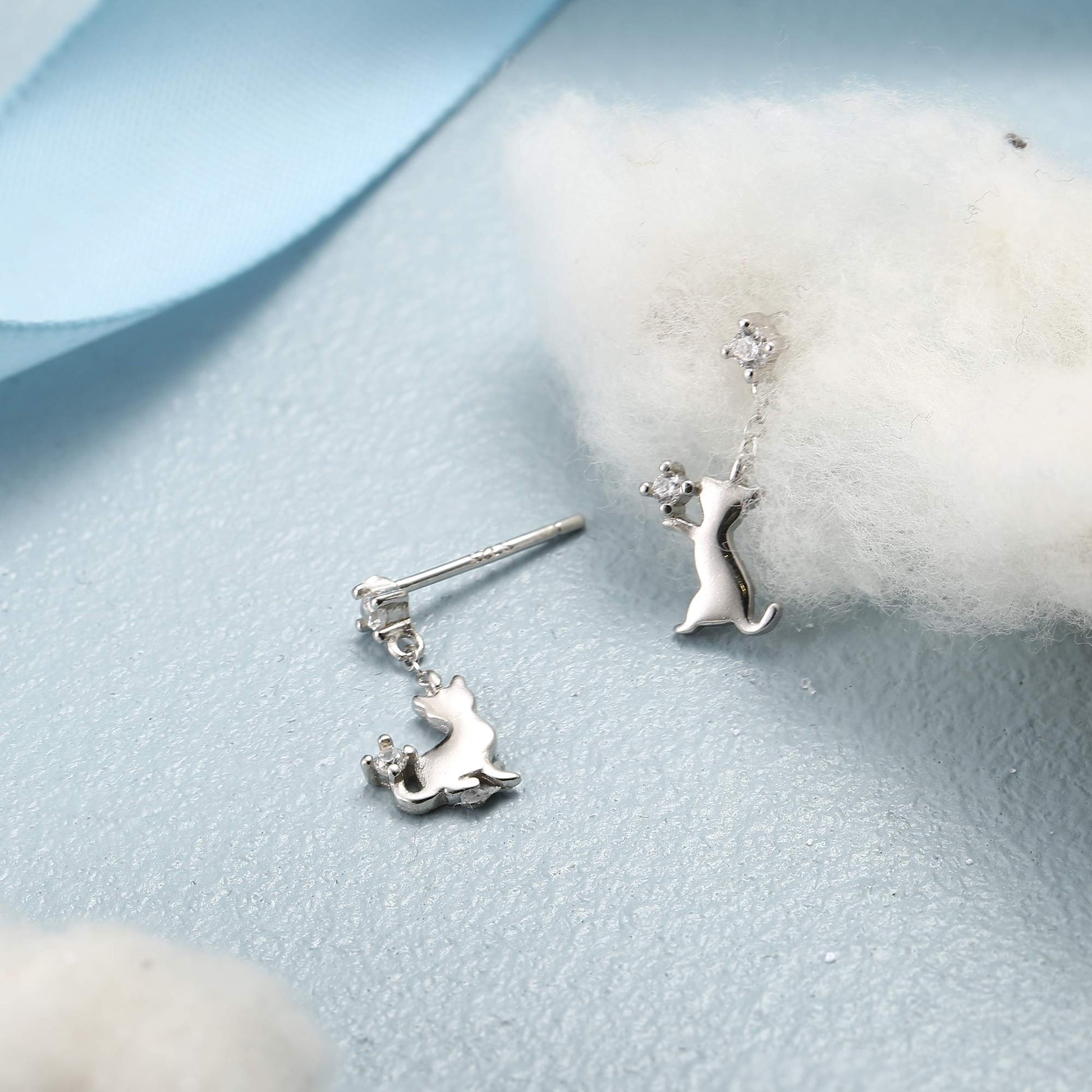 | 🐱CUTE CAT EARRING🐱Two different cats, one sitting and the other standing. Paved AAA+ Cubic Zirconia, add more shiny to the cute cat earrings. 🐱TOP QUALITY MATERIAL🐱These cat earrings are made of high quality 925 sterling silver, 14k gold plated, AAA+ Cubic Zirconia, 100% hypoallergenic is the best choice for sensitive ear, fine crafted and surface is polished very smooth, comfortable to wear. 🐱STERLING SILVER CAT EARRINGS SIZE🐱Cat: 7 X 9mm, CZ: 2mm, total length: 15mm. |