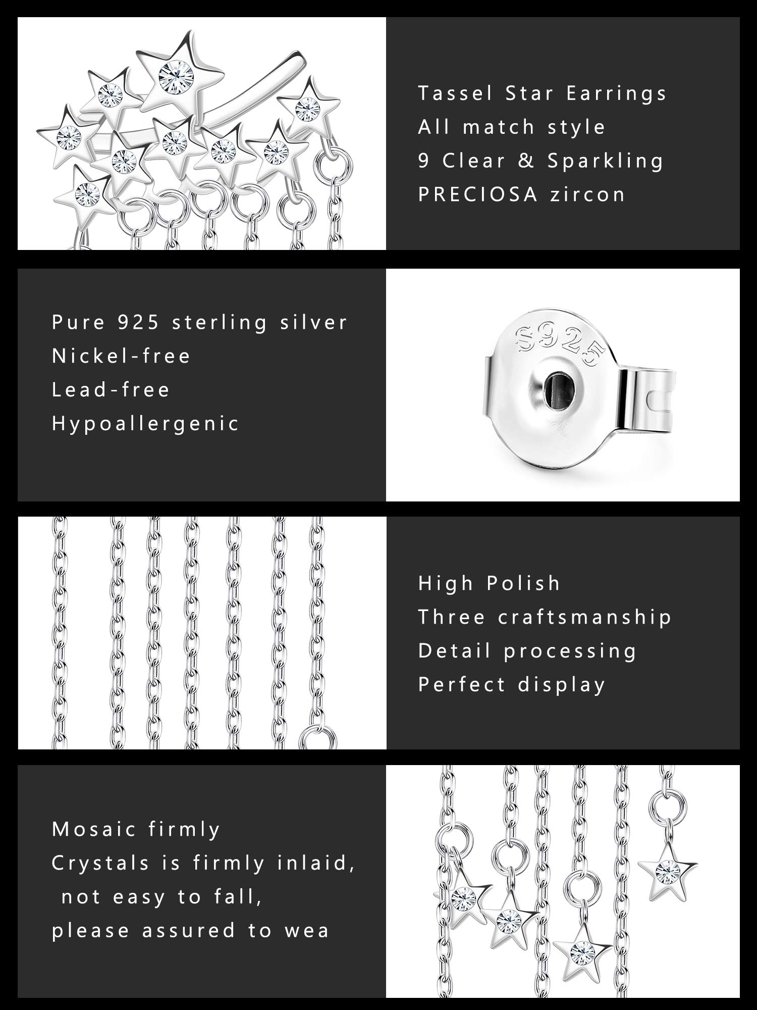 The width of the earring is 22.7mm, The tassels are 25mm, 50mm, and 90mm in length. This set includes one pair of fashion drop earring , Exquisite earring box and one silver cloth. Convenient for your maintenance of silver jewelry.