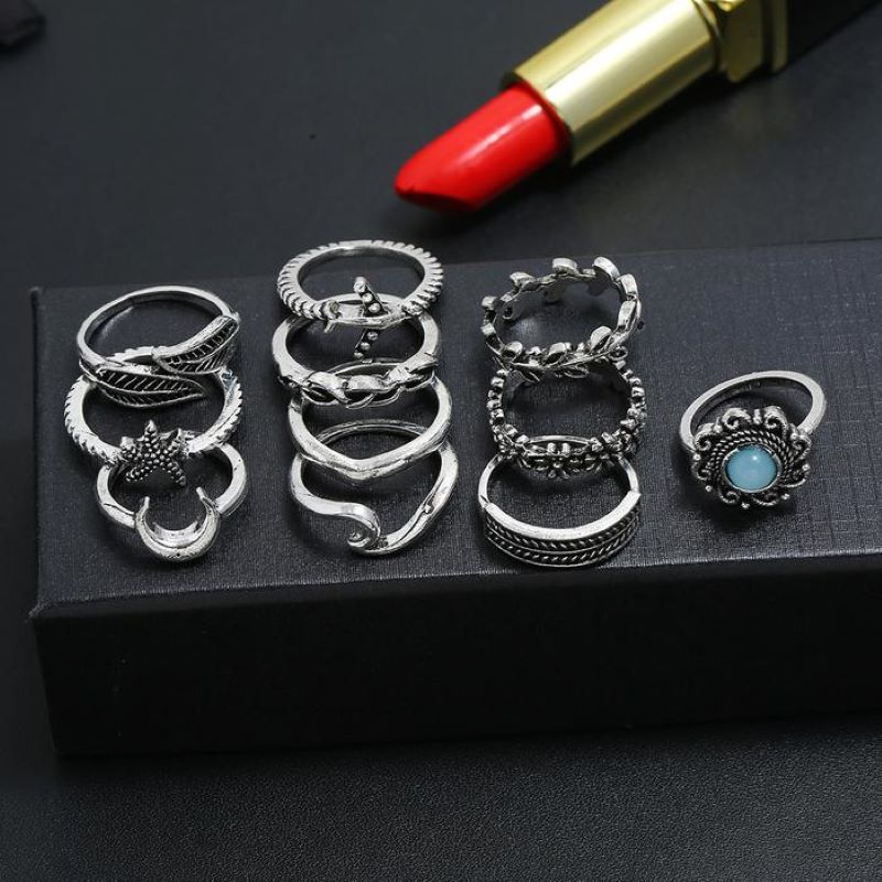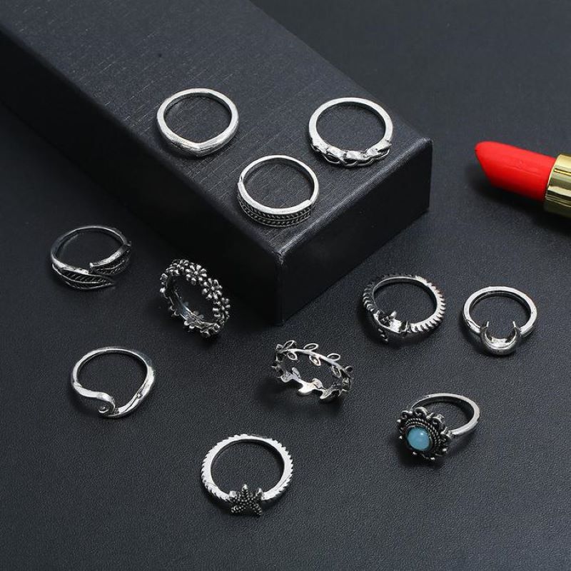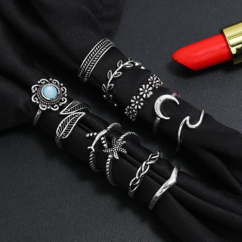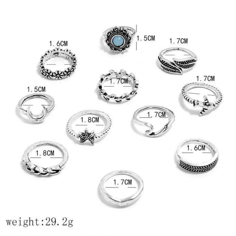 Bohemian Leaf Starfish Set Ring Set 11 Pieces