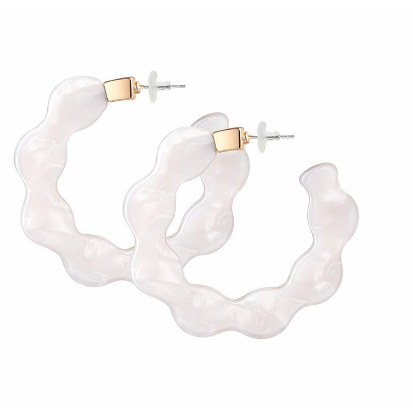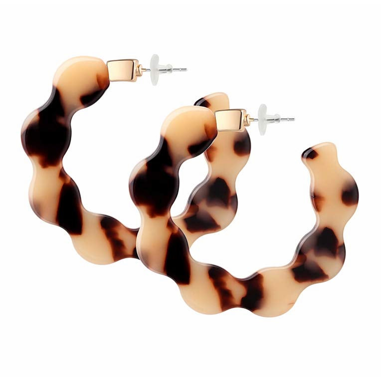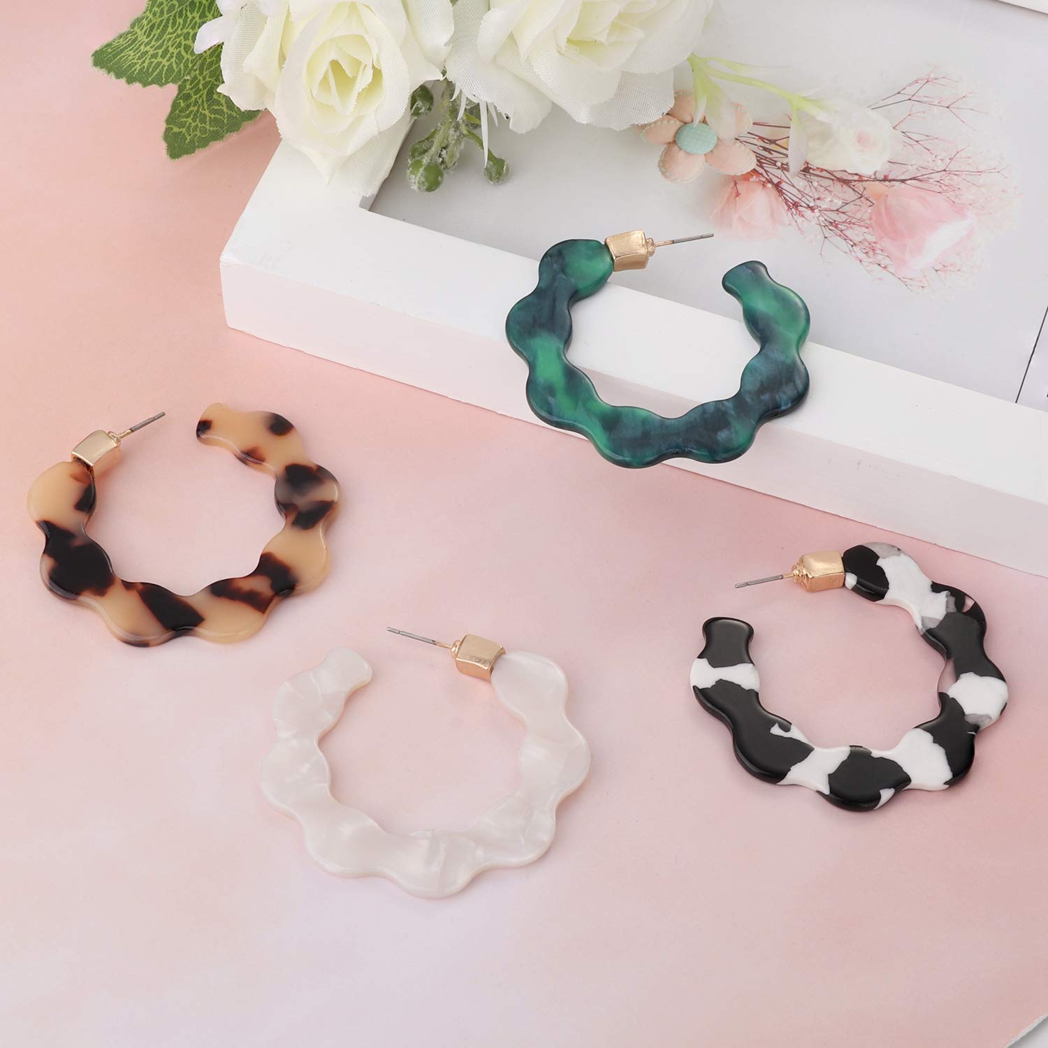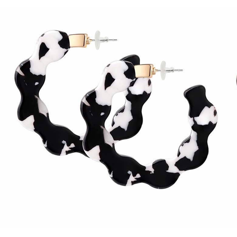 Mottled Acrylic Hoop Earrings for Women Lightweight Bohemian Jewelry Shell Resin Wave Statement Earrings