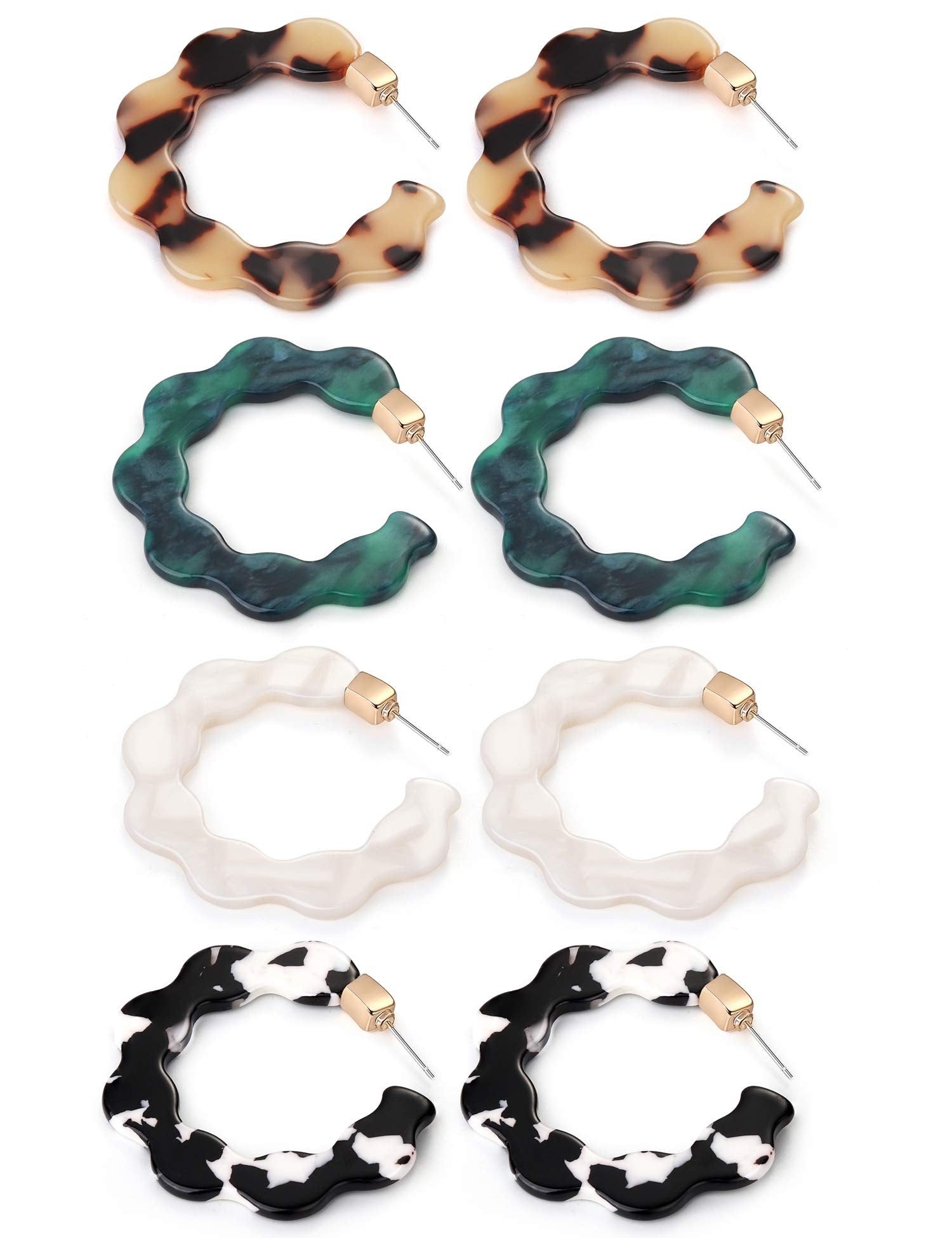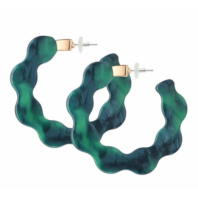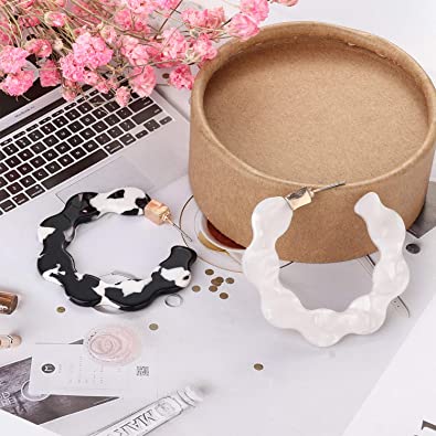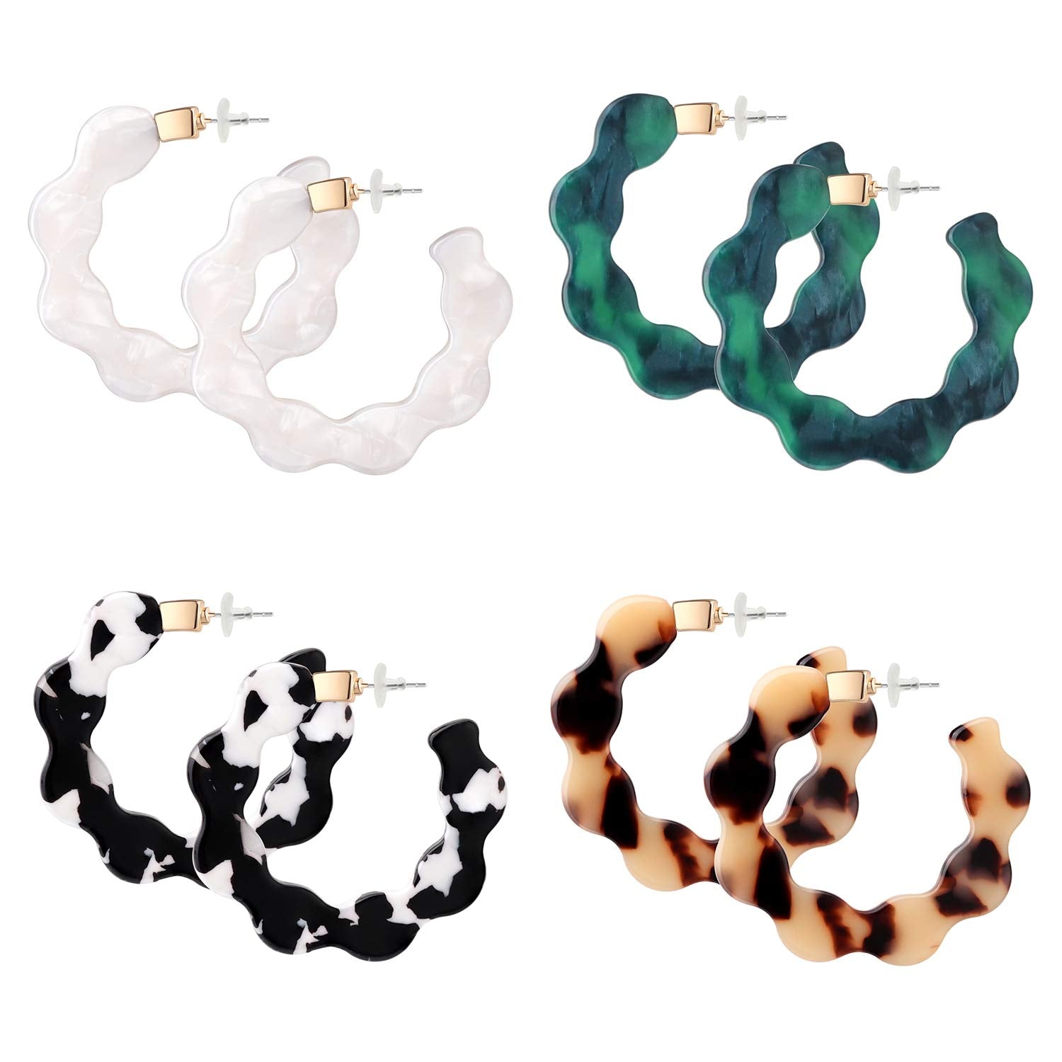 Mottled Acrylic Hoop Earrings for Women Lightweight Bohemian Jewelry Shell Resin Wave Statement Earrings
