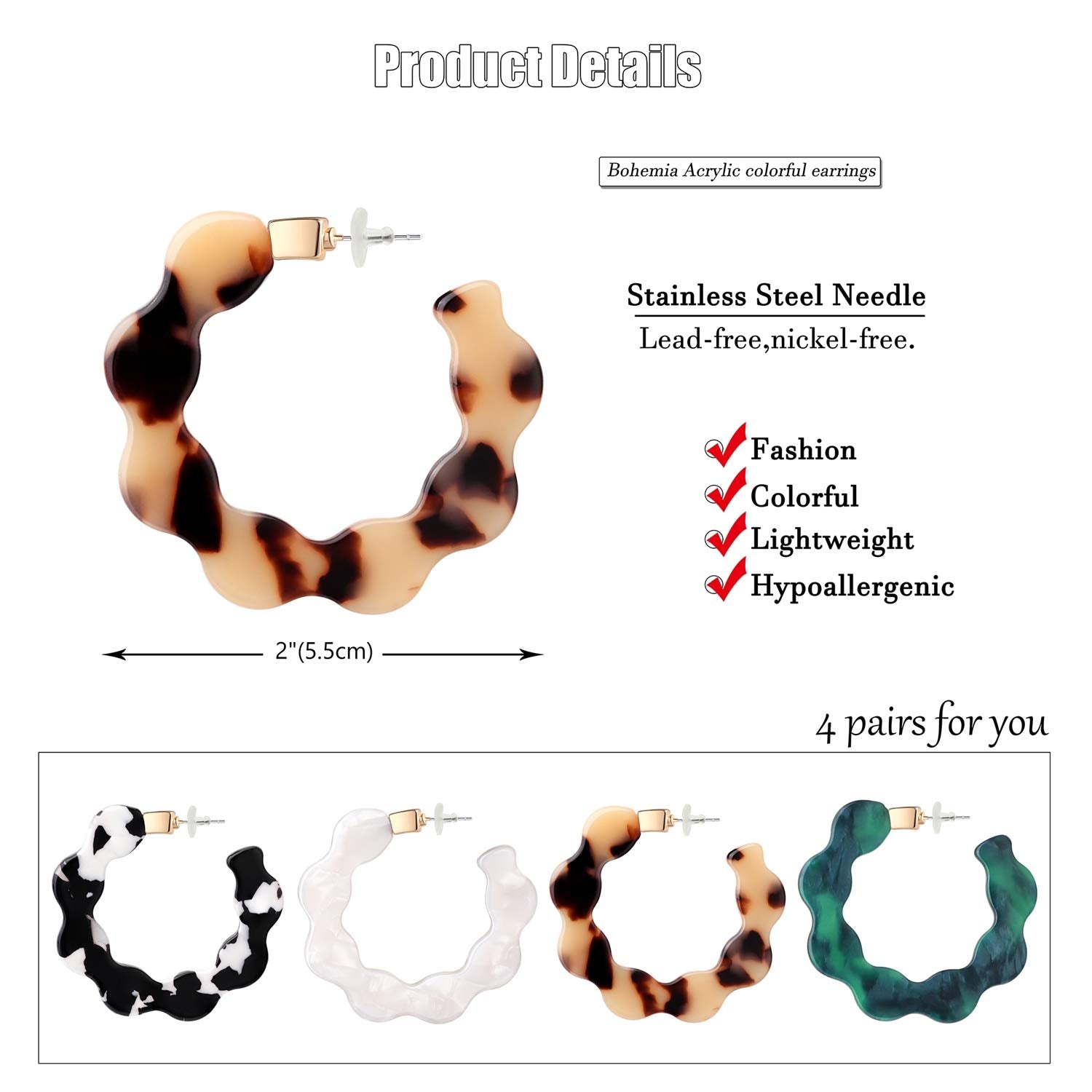 ♥ FASHION EARRING SIZE♥ Diameter: 2"(5.5cm), Perfect Size for Most of You. The Hoop Earrings Are Made With Stainless Steel Needle and Acrylic, Hypoallergenic and Lightweight, Easy and Comfortable to Wear and Take Off.