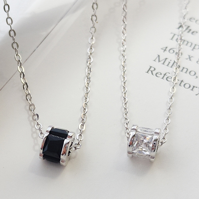 Geometric Cylinder Princess Cut Sterling Silver Plated Platinum Necklace