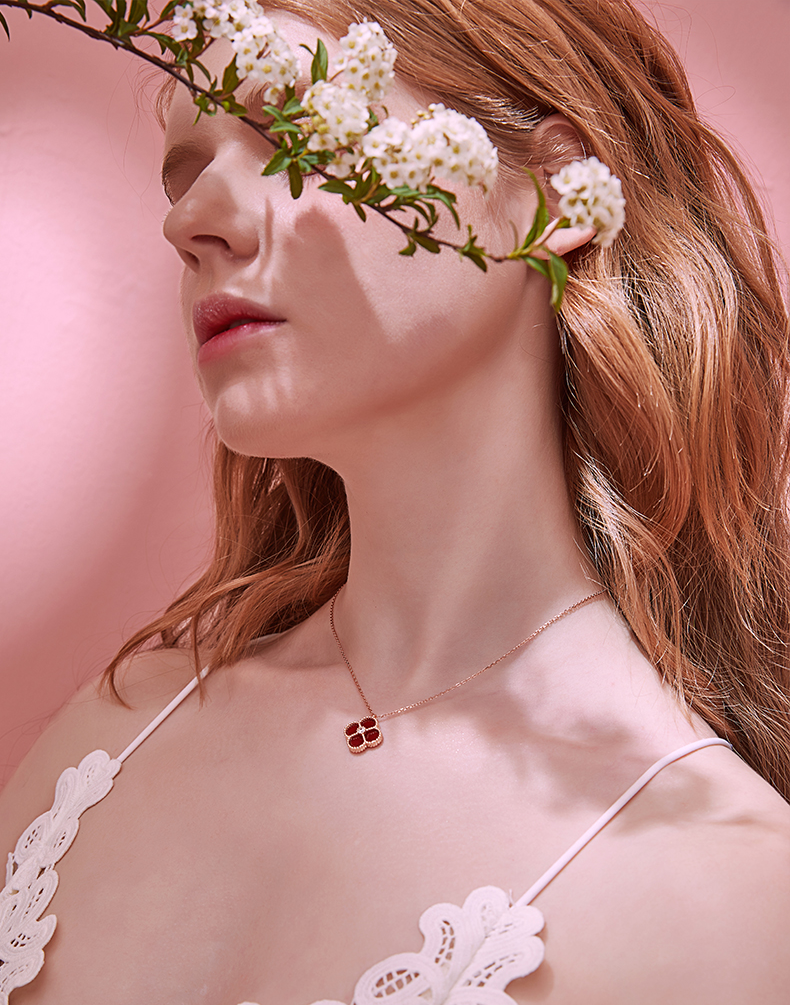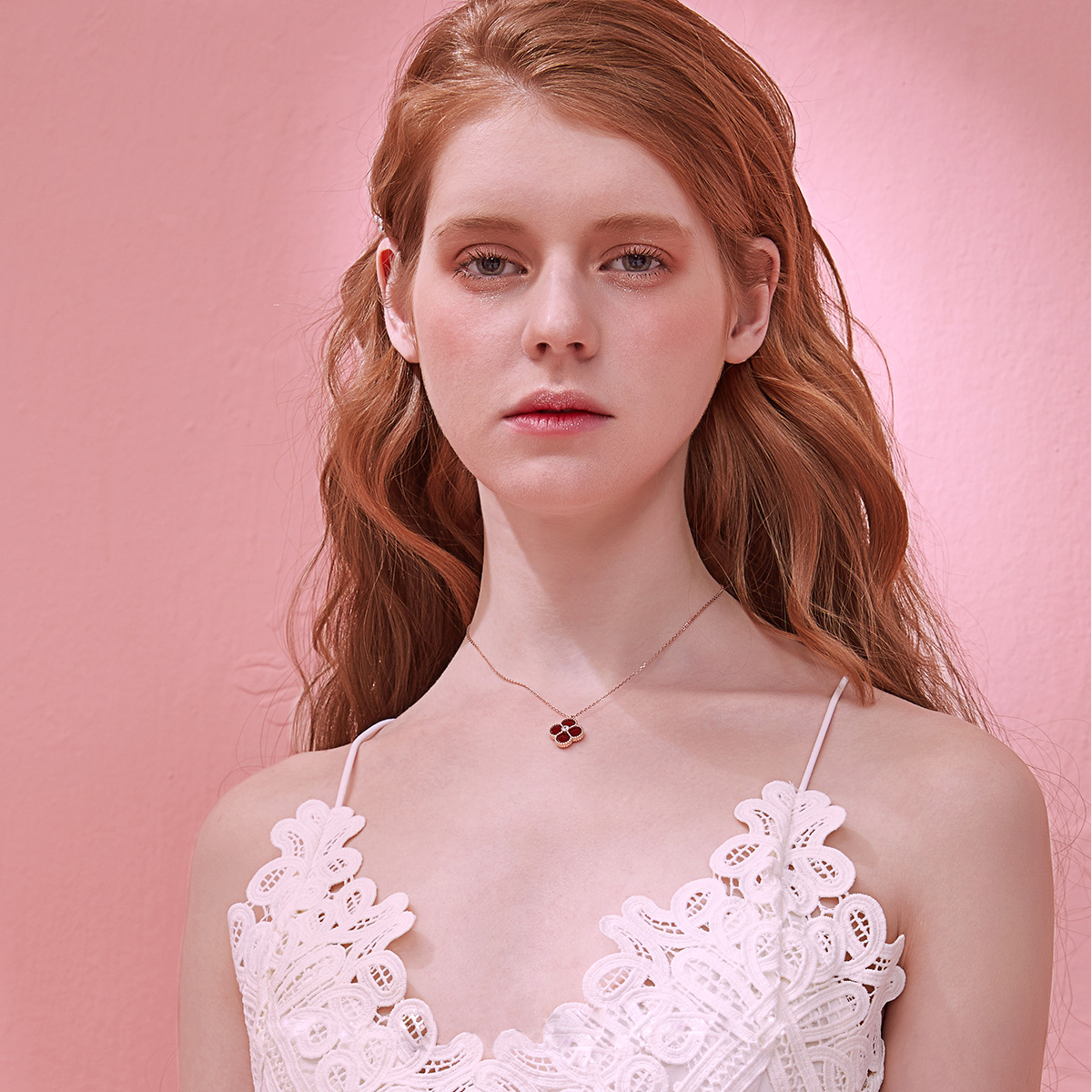 Elegant and delicate, this necklace makes an adorable gift for yourself or loved one.This necklace pendant shape a four-leaf clover, natural agate with diamond on one side.Wherever she goes, this necklace is a sweet reminder of your love and care next to her heart.