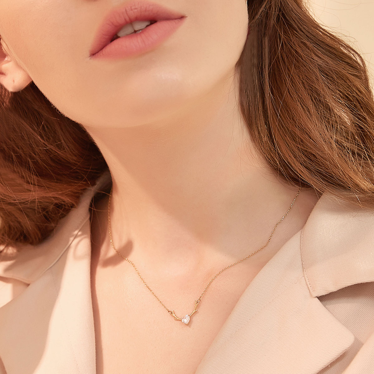Simple and classic, this heart and elk necklace makes an adorable gift for loved one. Heart is one of the most popular motifs in jewelry. It's always related with love. Crafted in sterling silver, this heart shaped elk pendant showcases magnificent heart cut stone standing tall in the three-prong setting.It will certain to show a sparkling and elegant look around your neck. Treat yourself or surprise her with this lovely piece.