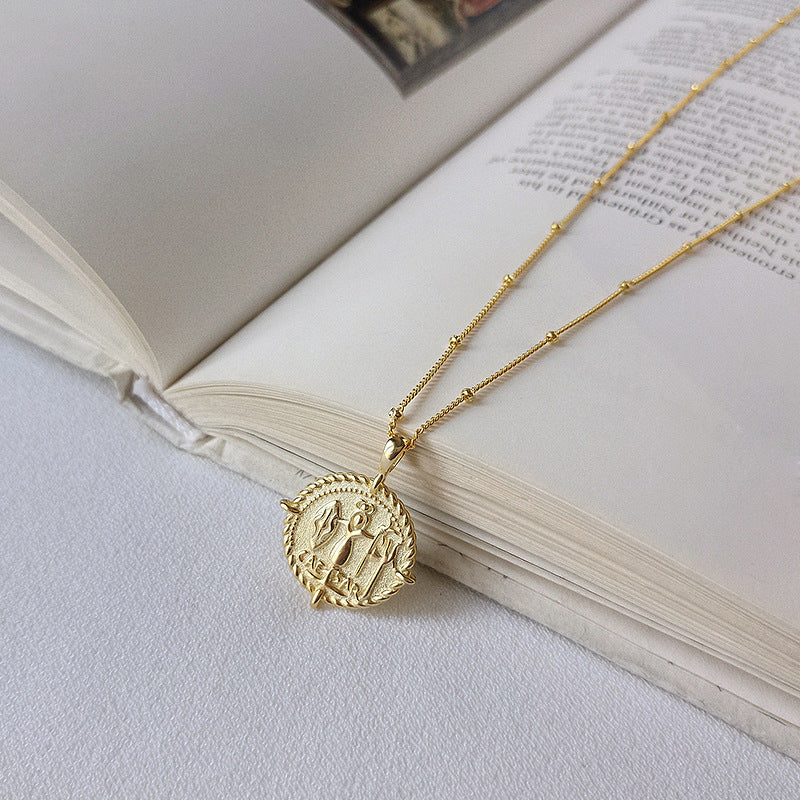 Embossed Coin Sterling Silver Plated Gold Necklace