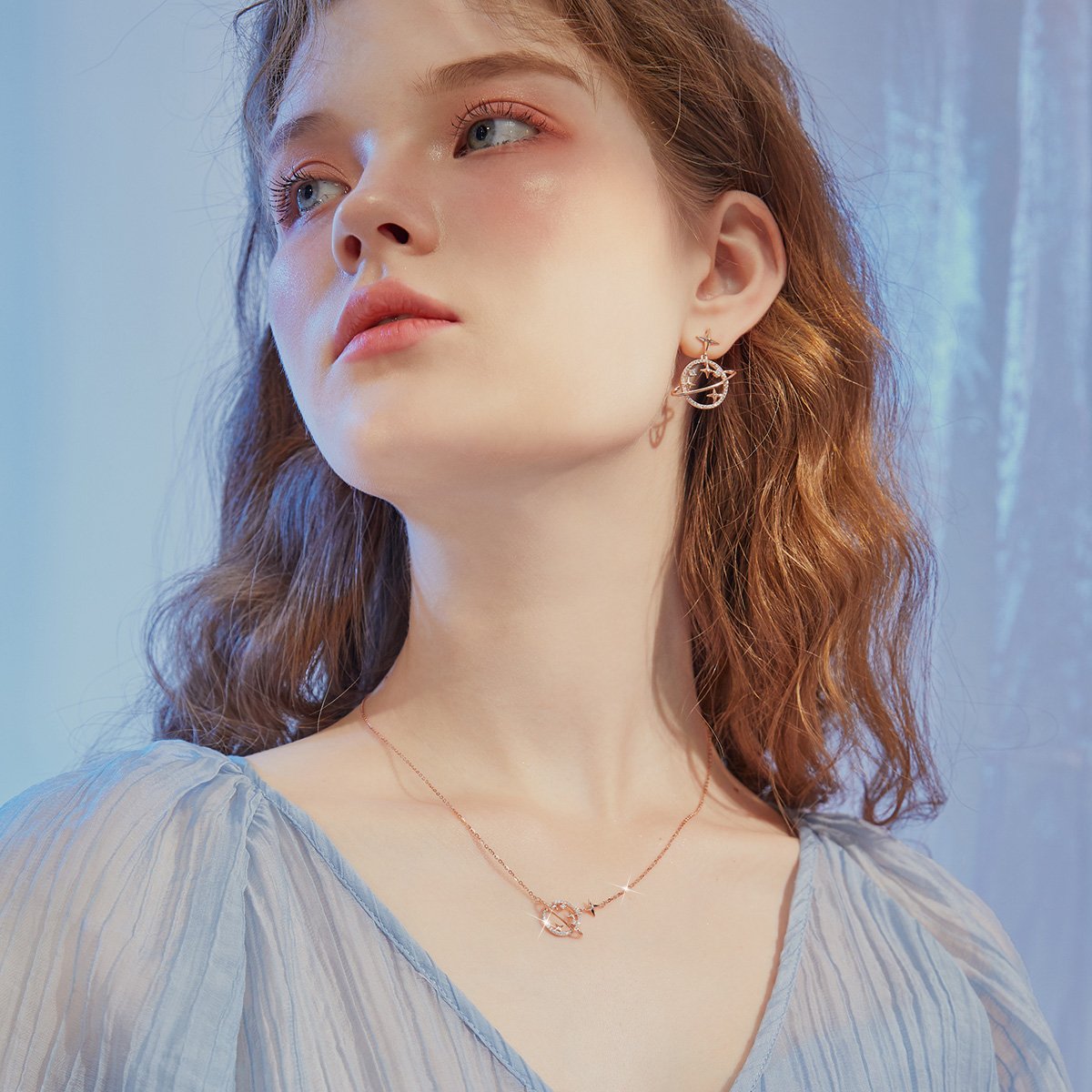 Inspired by love, magic, and the mysticism of the universe. Dainty and delicate, it's the perfect piece for adding a whimsical touch to your day. Crafted in sterling silver, shimmering white stones and stars with the necklace pendant, the necklace shows an elegant and glistening look. Treat yourself or surprise her with this lovely piece.
